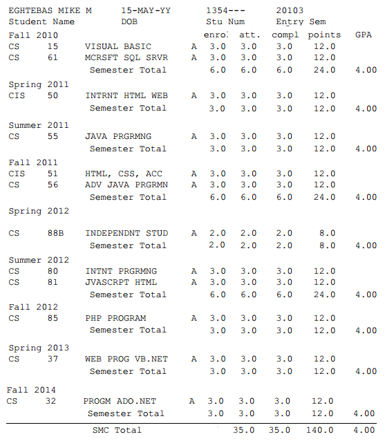 • Obtained certification of completion for "Querying SQL Server 2012 course 20-461 " and passed Database Admin Fundamentals MTA 98-364 Exam.